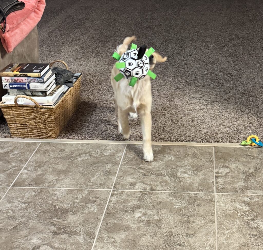 This Christmas, BD sent her theΒ most perfect giftsΒ β a bouncy ball that she chases nonstop and zooming around the house. And get this: a soft rabbit plush that’s now her official truck companion on our rugged mountain days.